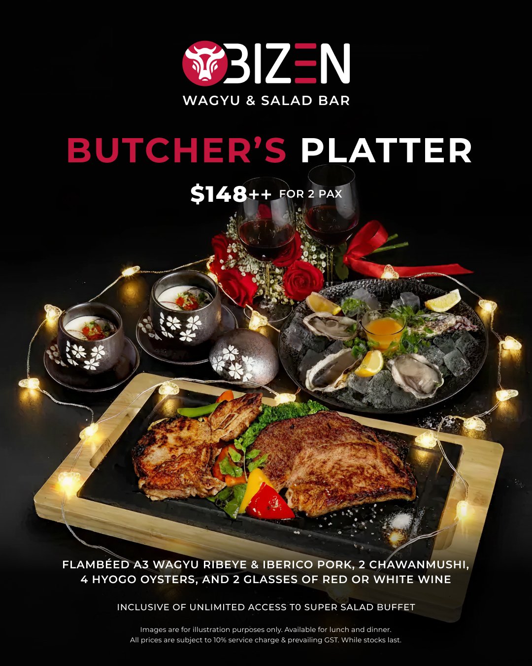 Get your romantic date ready with our exclusive Butcher’s Platter at $148++ per couple and add 2 glasses of Rose at only $15++! While stocks last.